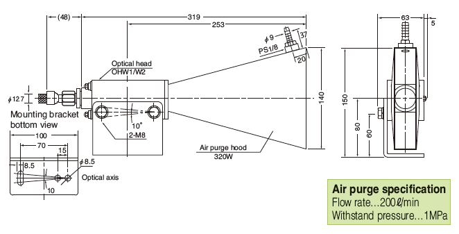 Example of combination of air purge hood and optical head