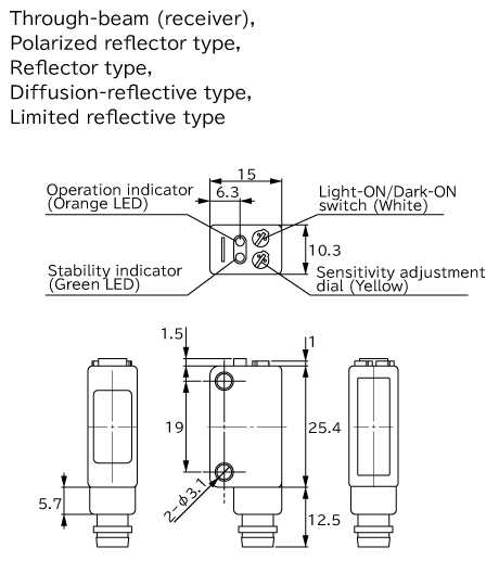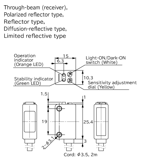 Model Power supply Detection method Detecting distance min (mm) Detecting distance (mm) Control output Operation mode Light source Protective structure Connection Download