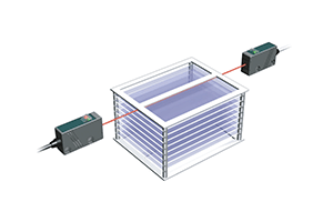 ロボットハンドにセンサを埋め込み、液晶ガラスの有無を検出します。投光光源を2個使用する方式で反り(そり)の大きい大型基板も安定して検出できます。