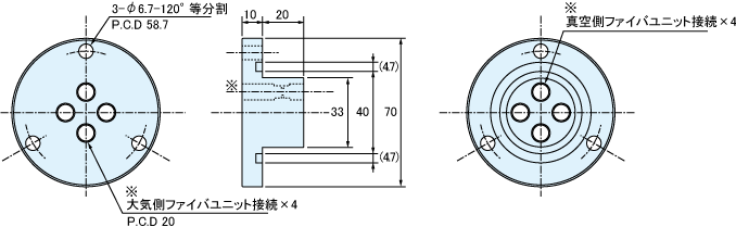 FA7VG702 中継フランジ 中継フランジ2chVG 形φ70 ラインナップ 外形寸法図 FA7VG702 ラインナップ 型式 検出方式 環境特性 先端形状 先端サイズ 検出距離min(mm) 検出距離max(mm) 特長 ファイバ長さ(m) 適合アンプユニット 標準価格(¥) ダウンロード FA7VG702 透過形 真空耐熱 中継フランジ2ch お問い合わせください 外形寸法図