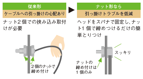 引っ掛けのトラブルを低減するナット形ファイバユニットをラインナップ