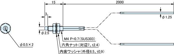 FR84BC 反射形ファイバユニット φ 2.5 ヘッド φ1.25 の細径 M4 ねじ付 ラインナップ 外形寸法図 FR84BC ラインナップ 型式 検出方式 環境特性 先端形状 先端サイズ 検出距離min(mm) 検出距離max(mm) 特長 ファイバ長さ(m) 適合アンプユニット 標準価格(¥) ダウンロード FR84BC 反射形 常温 ねじ型 M4 770 汎用 2(フリーカット) F100R F2R F70 F80R F85RN XF12R-A 5,800 外形寸法図 ねじ部の締め付けトルクは0.8N・m 以下