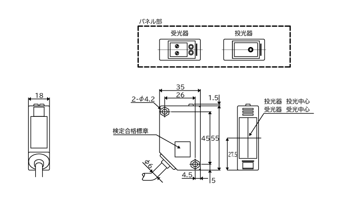 検出距離は透過形(30m)、偏光リフレクタ形10m(K-8使用時)、拡散反射形1mを実現 - オプション(透過形のみ)