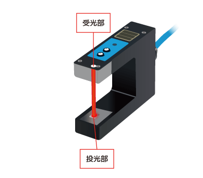 - 投光器・受光器一体形で、光軸調整不要。高速応答と高い検出精度を実現するコの字形センサ